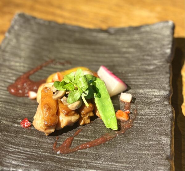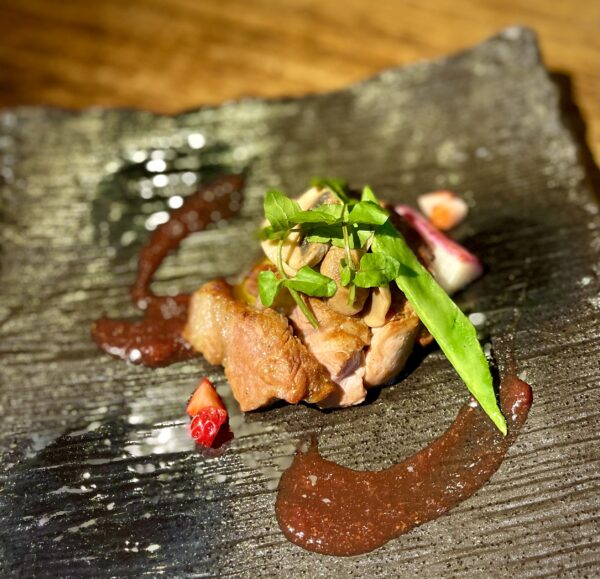 ■大山鶏の粕漬け焼き 苺のバルサミコソース