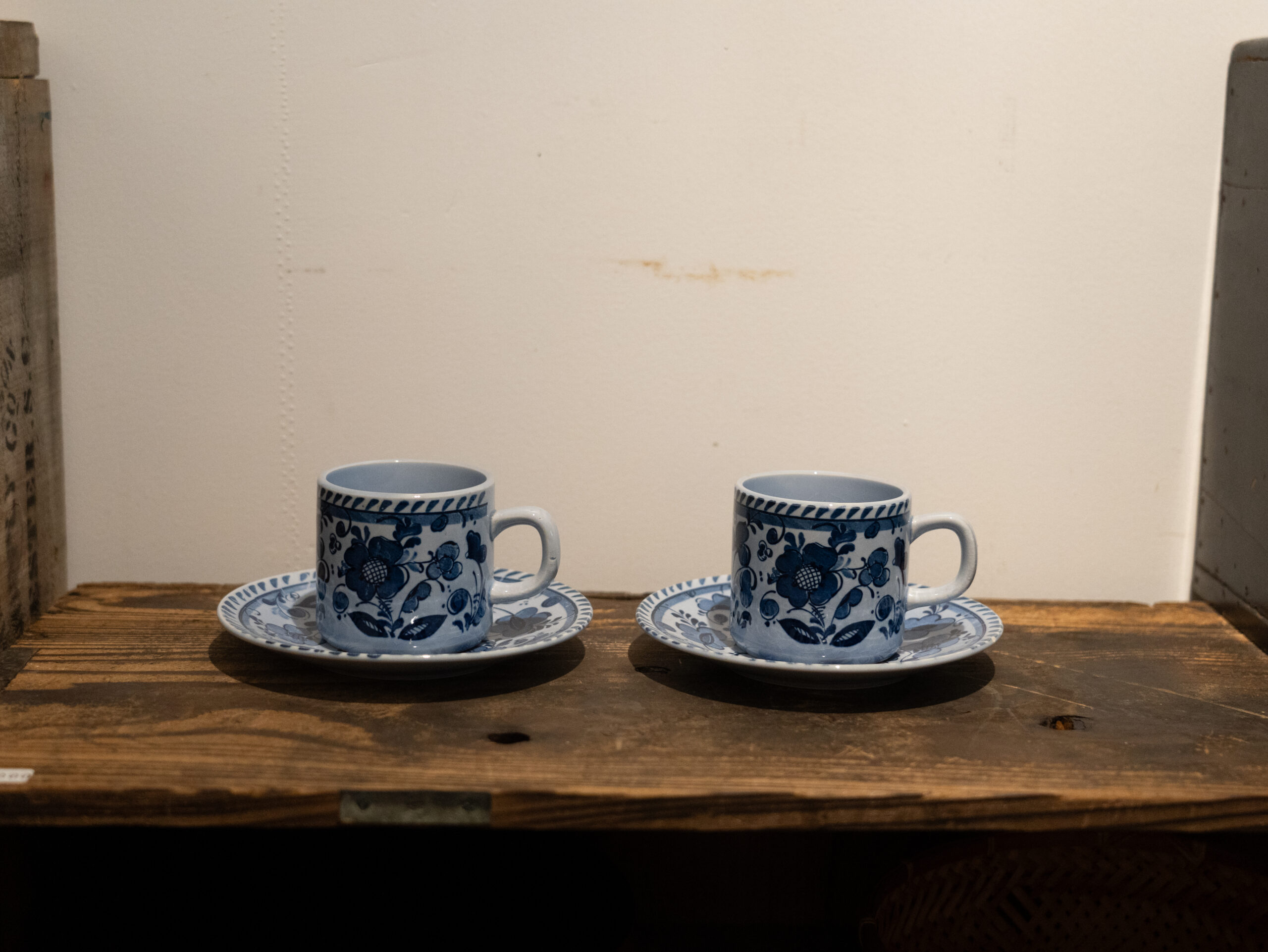 - トナラ焼きの雰囲気よく似た絵付けのカップ&ソーサー。こういった食器も人気が高い。