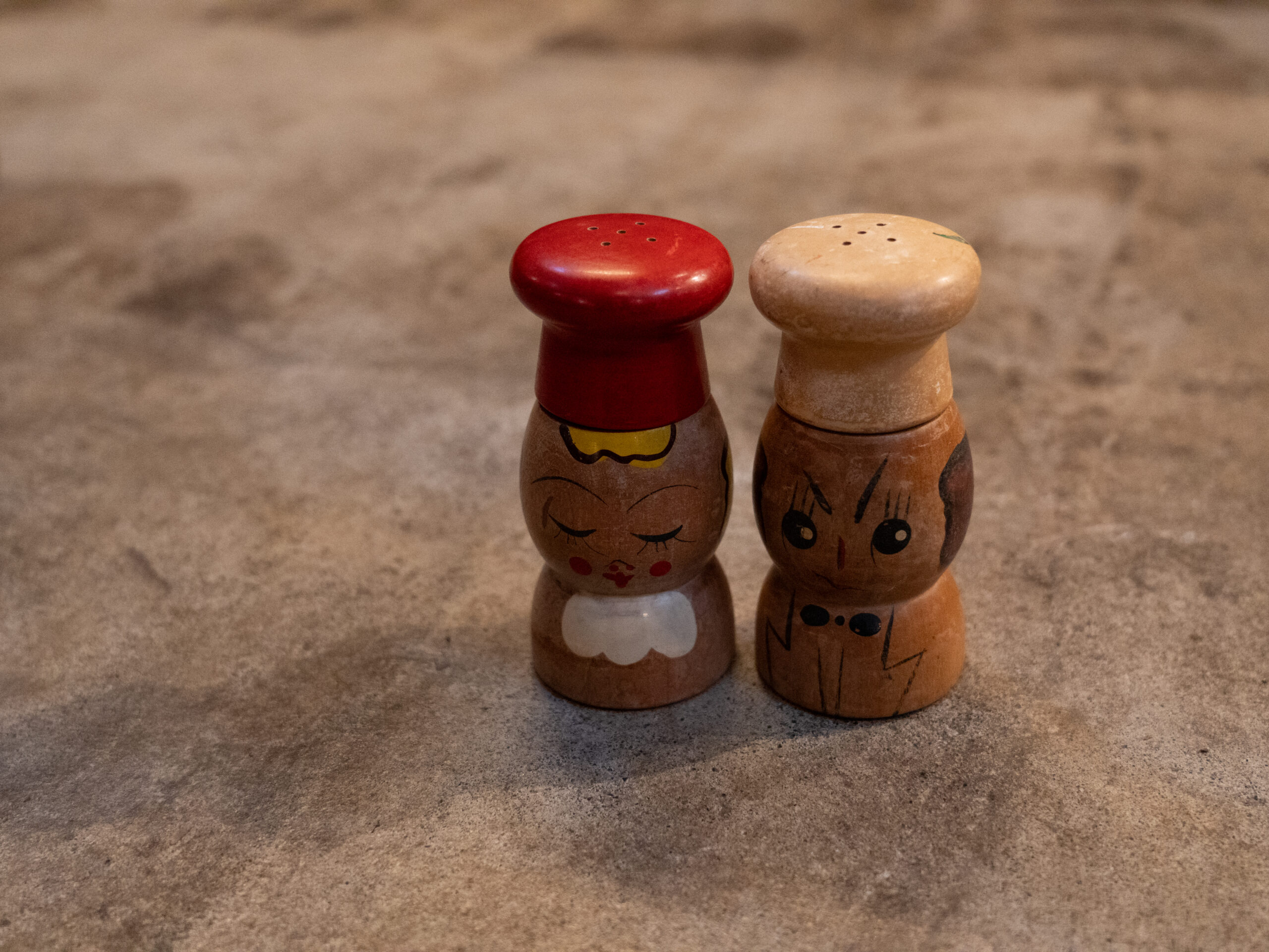 - 1947-1952年頃のソルト&ペッパーの木製の入れ物。