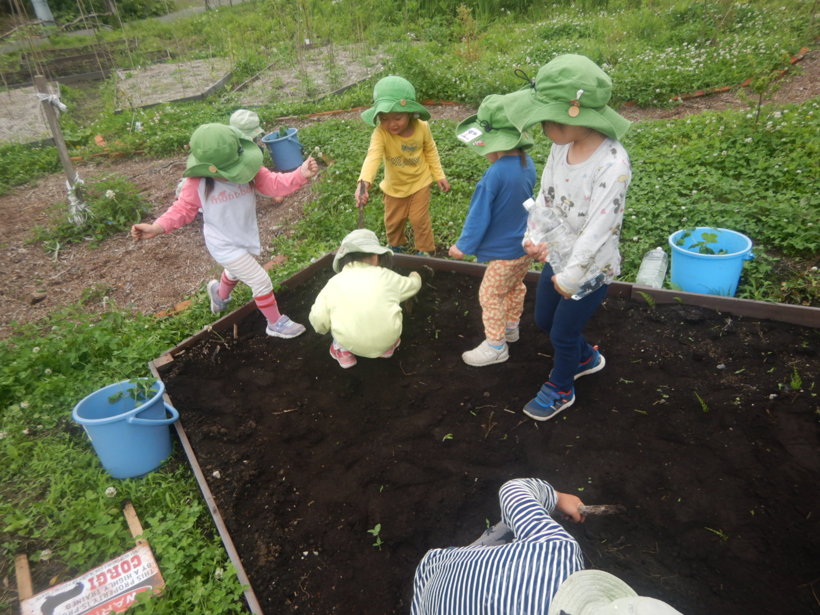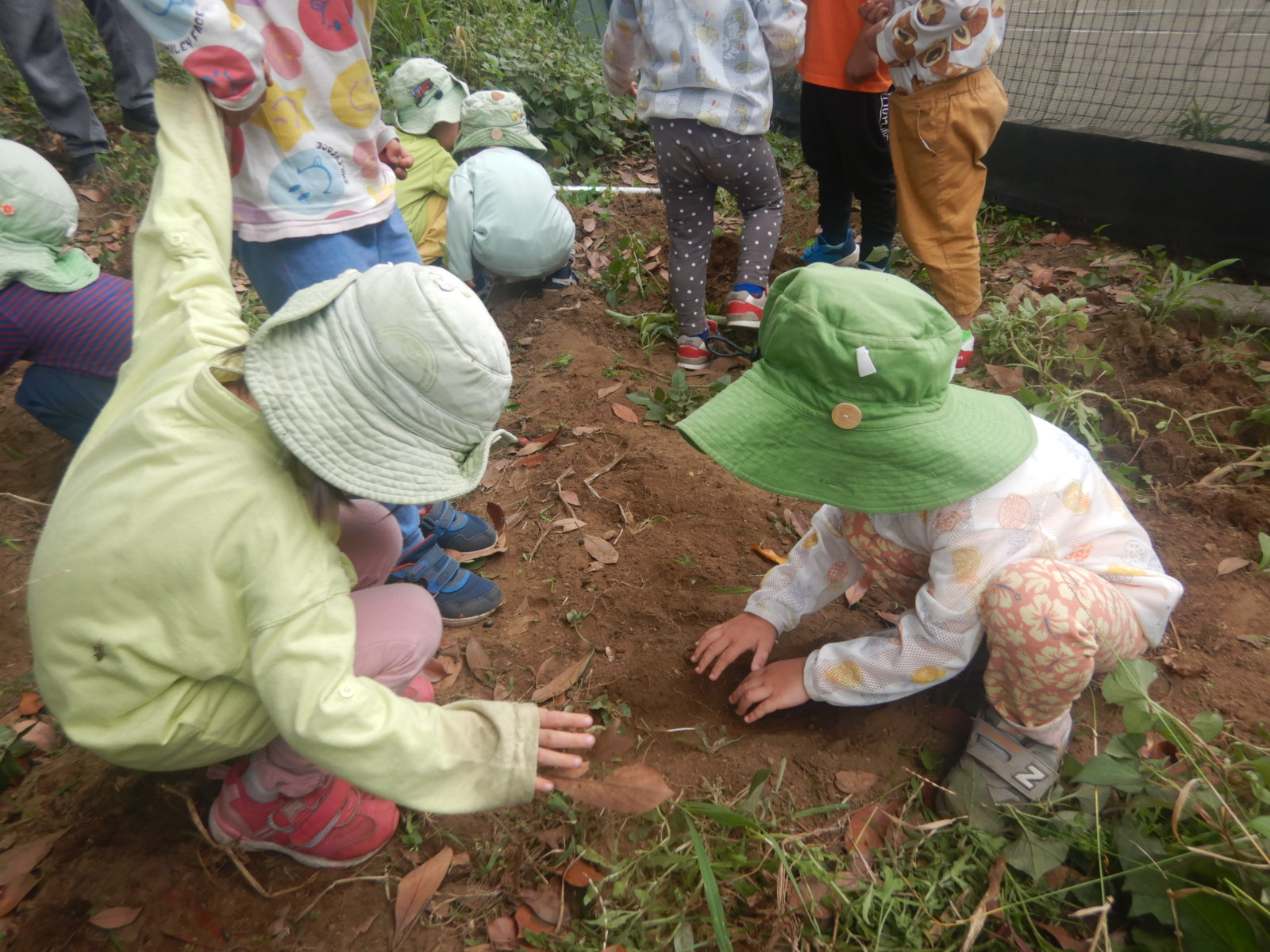 子どもにとっては畑仕事というよりこれも土遊び。学びも遊びです。
