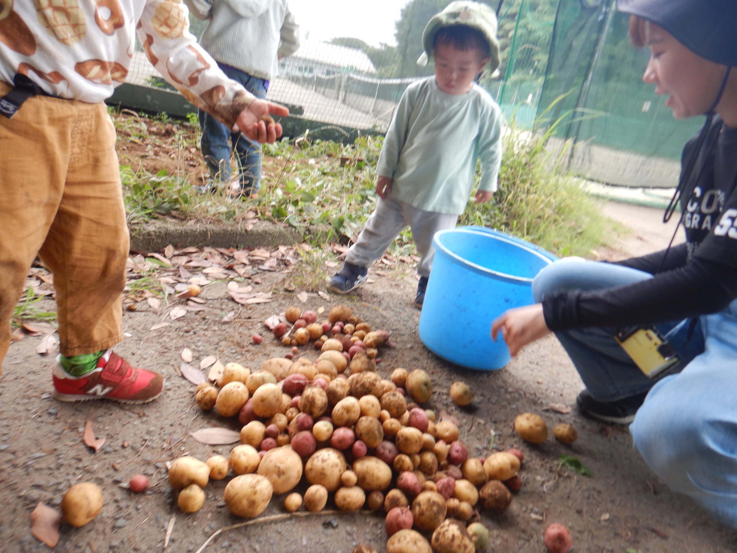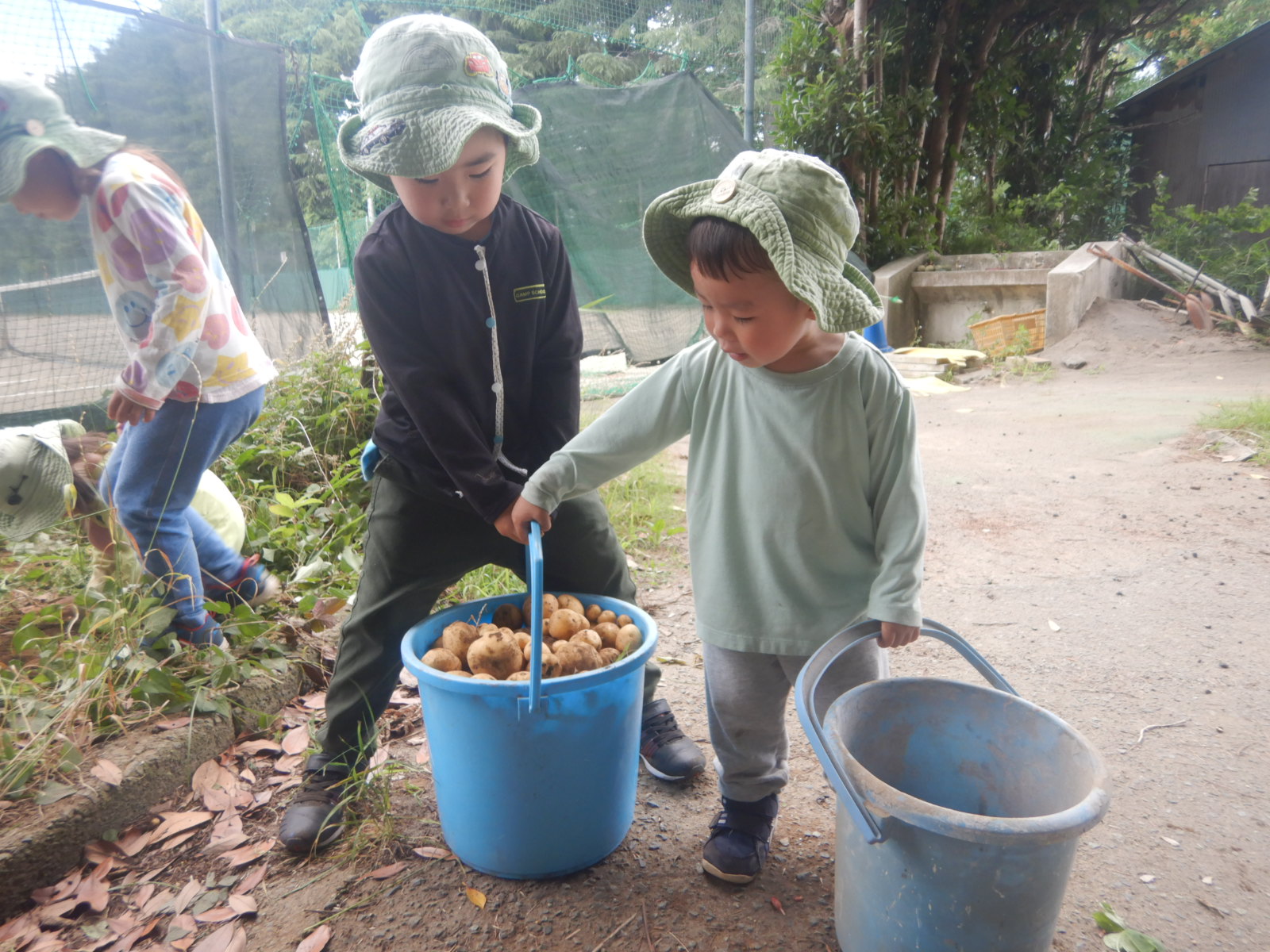 全員でジャガイモ掘りに。