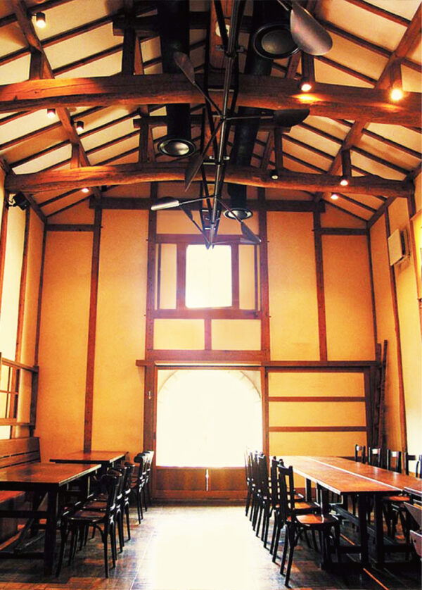 そんな時出会ったのが小田原のケムリデザインでした。同世代でデザイン事務所を立ち上げたばかりの彼らと意気投合し、和紙を使ったオブジェのような照明器具を依頼。店に命が吹き込まれた瞬間でした。心強いデザイン面のパートナーとの出会いとなり、少しずつインテリアを自分好みに変えていきました。翌1997年の春には酒蔵の使用済みの道具で椅子・テーブルを製作しガーデン席を開設、秋には当時通っていた大好きな鎌倉のカフェ・ミルクホールに依頼して、定期的に骨董市を敷地内で開催してもらいました。振り返ると、照明・家具・古物・・・自分の“好き”を集めたパラダイスを作りたいという想いは当初から少しも変わることはなく、それが時代の必要性や人との出会いによって変化しながら続いて、今があるというわけです。