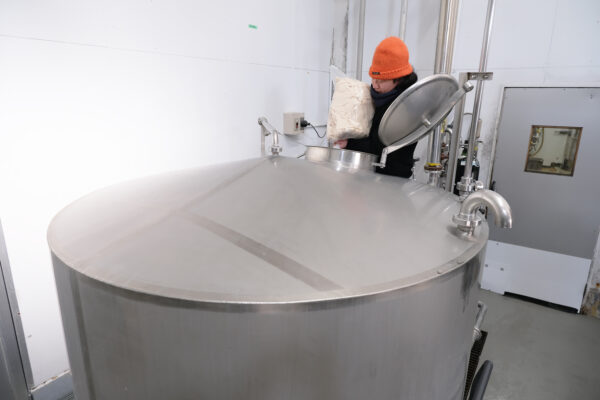 酒粕を投入している様子