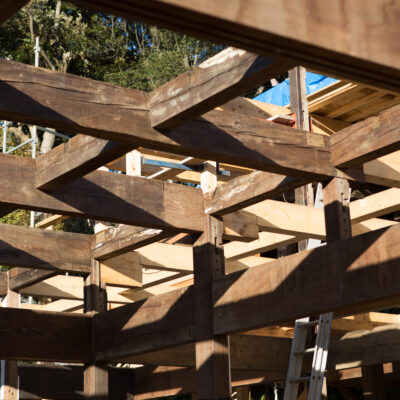 2014年。鎌倉にある菅原通済の自邸と文庫蔵をご縁あって敷地内に移転、大改修工事の末モキチトラットリアは移転オープンしました。(P08〜を参照)それから10年以上がたち、今ではすっかりこの敷地の大黒柱のような佇まいです。この建物との出会いも、そしてそこから始まった新たなモキチトラットリアの姿も30年前には想像もできませんでした。