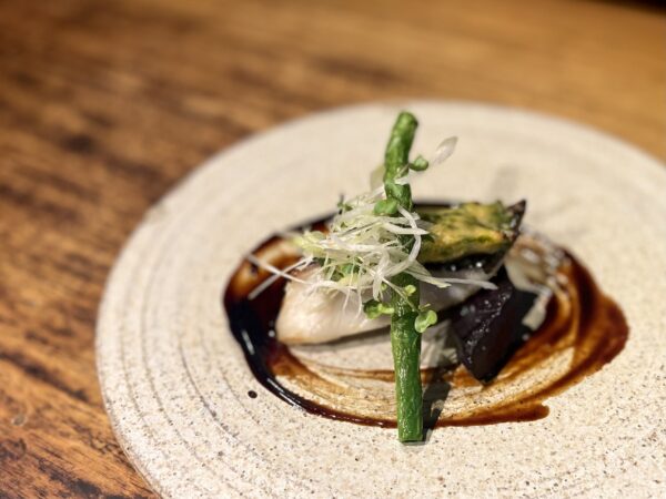 ■鮮魚の柚庵蒸し どぶろくと小柱の貝出汁餡