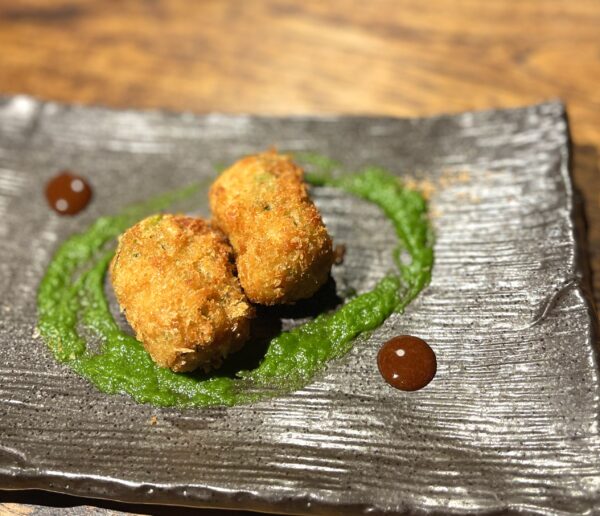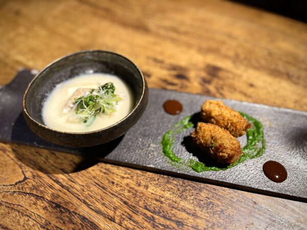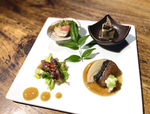 ・蛍烏賊のお浸し 蕗の薹と豆乳の寄せ
