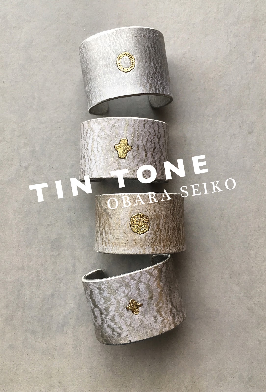 今回は、DMの表にもなっている錫(すず)のバングルも並びます。柔らかい素材で、手首にフィットするそうです。