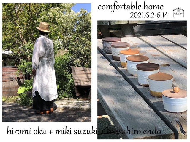 岡洋美さん、すずきみきさん、遠藤マサヒロさんの企画展、「comfortable home ~暮らしを彩る道具展~」が62(水)から始まります!