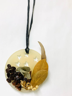 月桂樹、シナモン、珈琲豆、ペッパーベリー、レモンユーカリ、スターアニスなどを使った少し渋めの色合いで、落ち着いた雰囲気に。