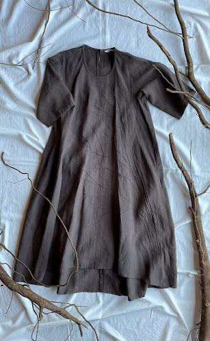 広がる枝や根、植物特有の曲線に惹かれてその模様をピンタックで表しました。摘んでは縫い、摘んでは縫いを繰り返し世界に2つと無い洋服に仕立てました。