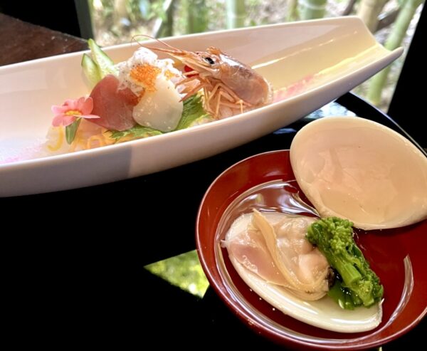 華やかな海鮮ちらし寿司と蛤のお吸い物が入っていて、お祝いにもおすすめです。